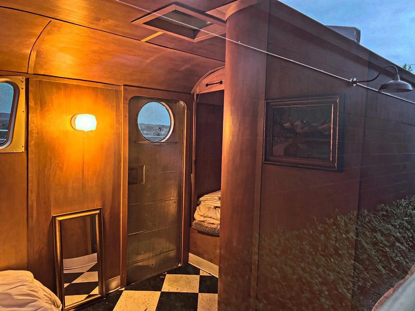 The 1949 Spartan Trailer is a retreat from the indoor studio, intentionally set up as a simple space for writing, recording, and playback as well as a nap zone or overnight sleeping quarters.