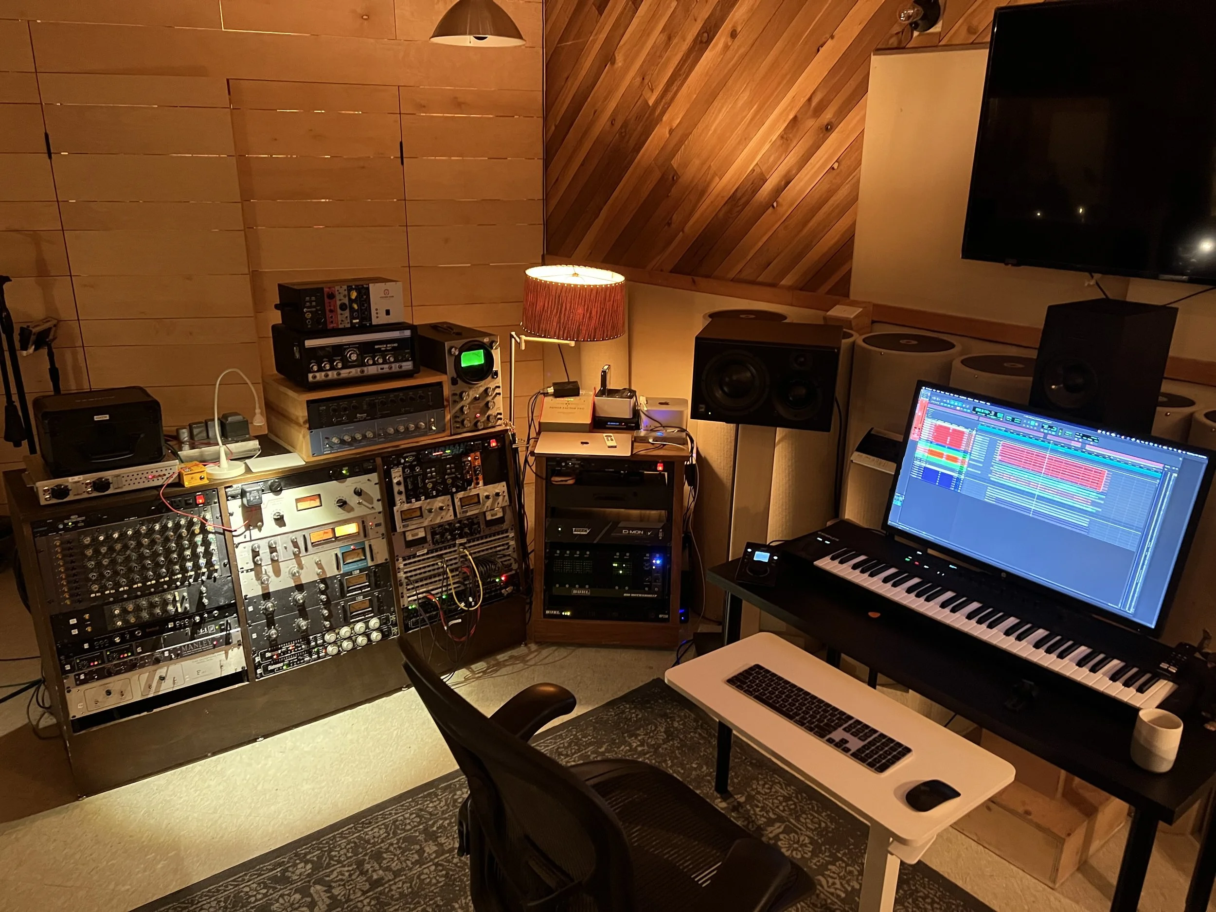 Designed with flexibility in mind, each room is a “plug and play” setup for users to bring their own computer* for quick tracking and mix or for a place to work and to write while having instant access to a great collection of gear and instruments. When the goal is to book out the entire studio, the space can accommodate full-band lock-out sessions, orchestral recordings, and even performances or small group events.