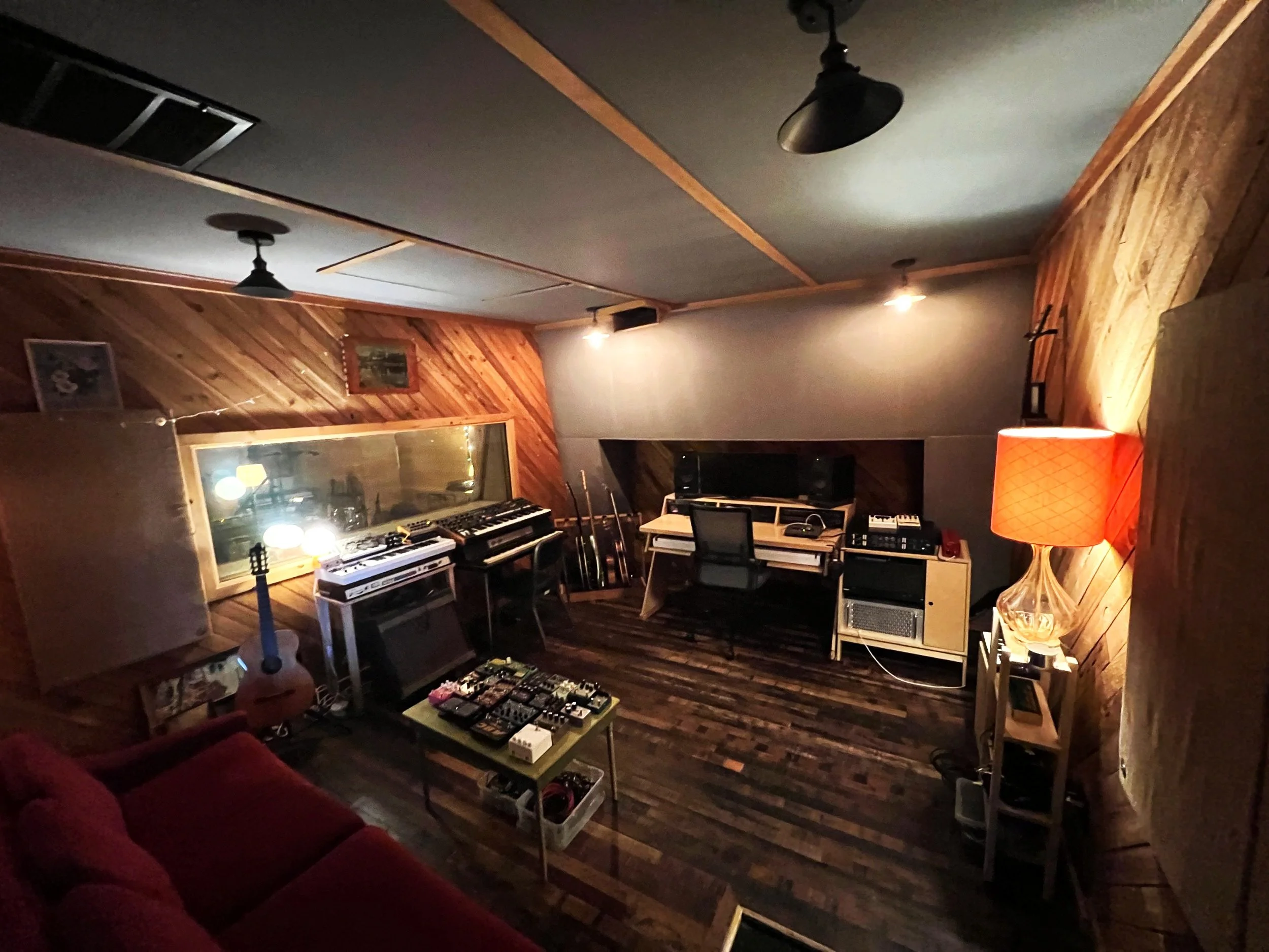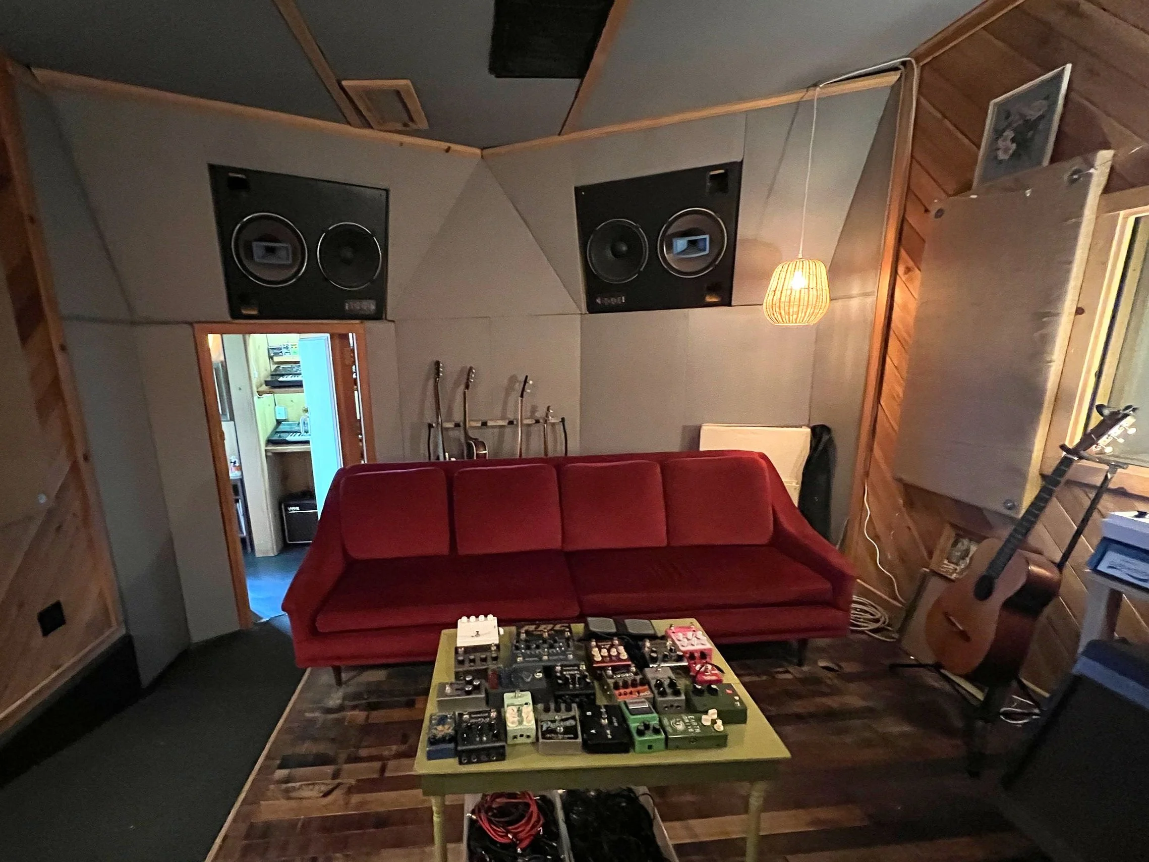 Originally used as the control room for the main room (aka room A), this room is a great mix and tracking environment, but also has a 2-way connection to and from Room A. If working with a large project, this room is ideal for adding more isolation rooms to Room A (IE Drum kit, guitar amps, isolated vocals etc…). Further, one can also track from the B room into the A room for an additional 18 inputs of A to D conversion, and mobile mic pres making it ideal for recording large ensembles or for recording a live performance with or without audience.